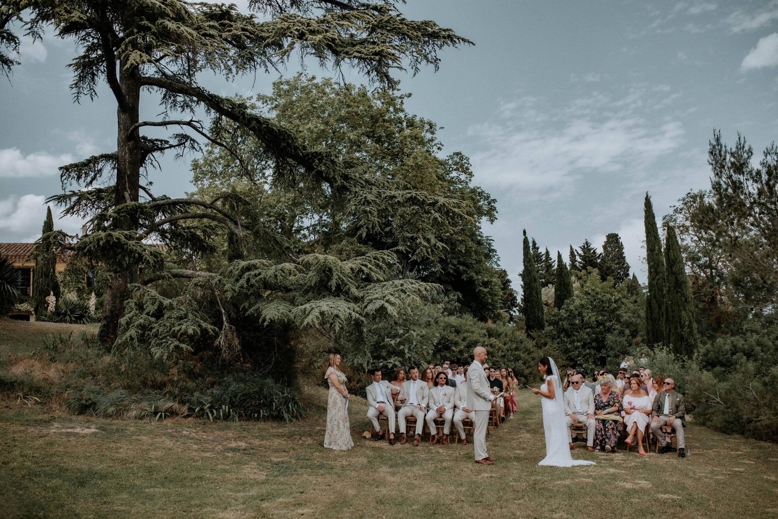 Ils sont arrivés d’Angleterre pour célébrer leur union en France, et j’ai eu la chance de témoigner de ce moment unique. En mai 2025, dans un domaine niché entre Carcassonne et les Corbières, leur mariage avait un parfum d’exception : l’élégance anglo-saxonne mêlée au charme du Sud.